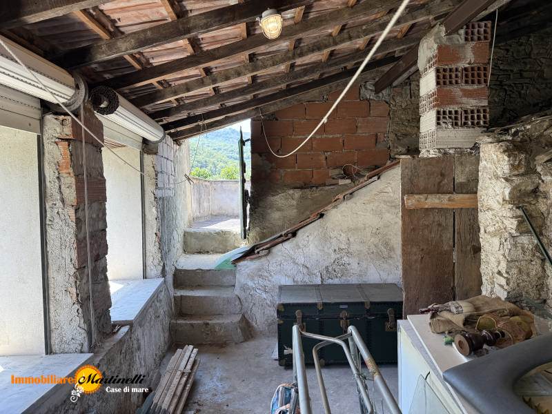 In a sunny location with excellent pedestrian and vehicle access, large village house to renovate, arranged over several floors connected by an internal staircase, comprising an external entrance courtyard and bathroom on the ground floor, entrance hall, kitchen, living room and first bedroom on the mezzanine floor, second bedroom on the mezzanine floor, another bedroom, three rooms and a terrace with a splendid panoramic view of the valley on the first floor. The offer includes two large warehouses/storage rooms with independent entrances, one of which is connected to the house, plus a flat plot of land in front of the house with an internal storage room/chicken coop. House with outdoor courtyard and terrace 162 m² - First warehouse 40 m² - Second warehouse 14 m² - Land in front of the house 562 m² with storage shed inside 6 m². A building compliance report has already been issued for the properties described, certifying their full marketability.