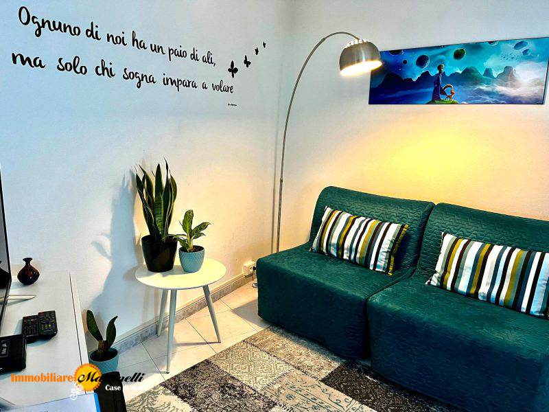 First floor: completely renovated flat comprising: small entrance hall, kitchen, bedroom with double bed, bathroom with window and a cosy living room.